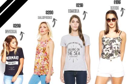 Remera Mermaid $209 Inversa / Musculosa floreada $280 Salsipuedes / Remera gris $219 Kimeika / Musculosa tiritas $185 Koxis /