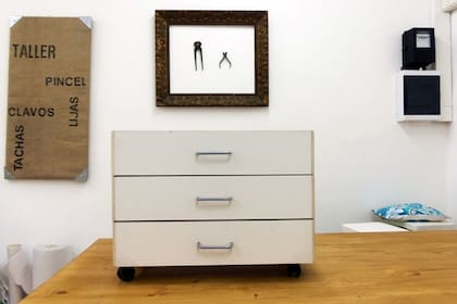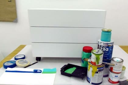 El segundo ejemplo es una cajonera de melamina blanca, a la que luego del tratamiento de imprimación, le aplicaremos pintura látex de colores.