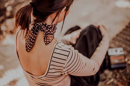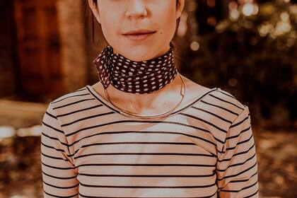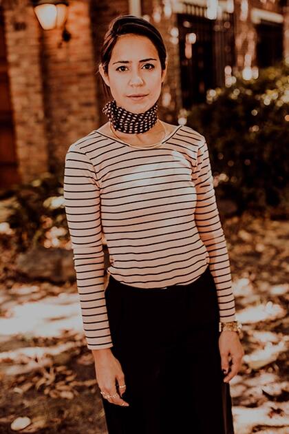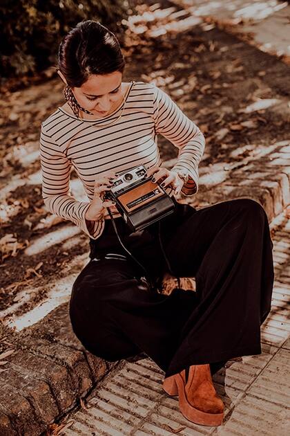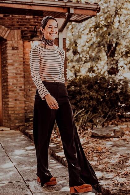 Con respecto a los puntos de conexión entre una pieza y otra, las rayas negras de la remera habilitan la combinación con el palazzo. A su vez hay una relación entre los zapatos, el pantalón y la remera a partir del detalle en negro de su lateral. Además, me pareció interesante buscar contraste entre la remera y el calzado. Por eso elegí unas botas en una gama de marrón un poco más oscuro. El resultado me sorprendió.
