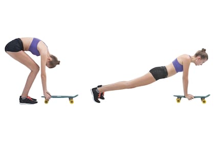 Parece increíble, pero la patineta de tus hijos (¡o incluso la de tu pareja!) puede ser un buen accesorio a la hora de darle una vuelta de tuerca el entrenamiento, para salir de la rutina y volverla más interesante. ¿Por qué? Porque este elemento –al igual que las esferas que usás en el gym, en pilates o en esferodinamia– nos brinda una base de sustentación móvil, y eso hace que nuestro cuerpo ponga en juego aun más el equilibrio y todos los músculos que usamos para lograrlo (¡que son muchos!). Vas a notar que es más difícil que trabajar con las esferas y supone un desafío para nuestra estabilidad, así que tratá de ser precavida cuando lo hagas, con mucha conciencia y control. ¿Los resultados? ¡Son increíbles!
