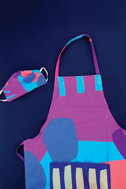 - El proceso. Antes de la pandemia, la carrera de Renata como artista plástica estaba ligada al turismo: sus obras estaban expuestas en bodegas y el 90% de sus cuadros se exportaba. Intervenía barricas, pintaba murales y trabajaba con empresas. Durante la cuarentena, bien abastecida de telas, desempolvó su vieja pasión por el diseño y el mundo textil y linkeó todo eso a su proyecto de arte digital aplicado. Así desarrolló una línea de nuevos productos con sus estampas que cosió ella misma, minipiezas de arte para uso cotidiano: buffs deportivos, lonas, individuales, servilletas, caminos de mesa, fundas para bolsas de agua caliente, pañuelos, llaveros, delantales, posavasos, agendas, cuadernos. Aplica sus diseños a todo lo que le da curiosidad pensando también en la utilidad, le dio un nuevo uso a la infraestructura disponible y generó tres puestos de trabajo armando un miniequipo porque no da abasto. A mediados de abril, cuando el tapabocas se volvió obligatorio, diseñó un molde funcional de tres capas: "Los quirúrgicos me parecían horribles". Ya vendió más de 2000 y tiene más de 250 modelos disponibles.