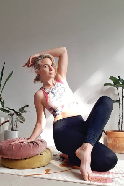 - El proceso. Cuando la cuarentena interrumpió su trabajo como maquilladora en un estudio de CABA, lejos de padecer el encierro y resistirse, se conectó con su casa y con sus prácticas de yoga como nunca. Vero había terminado el instructorado de yoga el año pasado y la pandemia la encontró cursando el profesorado. Después de tres años de práctica constante, el quiebre que significó el confinamiento la impulsó a conectarse con sus deseos. Un domingo se animó a dar una clase a través de un vivo de Instagram y esa fue la puerta para recibir consultas y pedidos de más. A partir de entonces, organizó clases grupales dos veces por semana en horarios fijos –que, si no llegás a hacer, te las manda grabadas– y clases individuales on demand, que diseña a la medida de cada persona. Además, armó una clase de regalo que envía por mail para mostrar el estilo de sus prácticas. "Confié en que compartir esta sensación de calma y felicidad iba a dar respuestas al estrés que genera todo esto. Además es accesible".