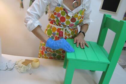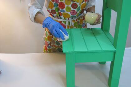Paso 4 Una vez que terminaste de pintar, podés darle una mano de barniz al agua incoloro o, directamente, pasarle bastante cera en pasta. Dejá descansar unas horas y repasá toda la superficie con un trapo de algodón que no genere pelusa, por ejemplo, un pedazo de alguna remera vieja que ya no uses.