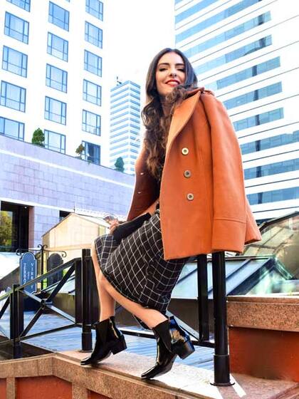 Para cortar un poco con el dúo cromático acompañamos al blanco y negro con un abrigo en color naranja oxidado o “rust”, uno de los tonos más elegidos para esta temporada y que favorece tanto a las morochas como a las rubias. ¿Se lo apuntan para un próximo posteo?