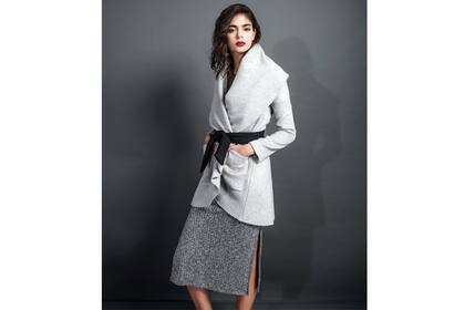 En este look: Las solapas del abrigo se maximizan y la falda tubo tejida es la revelación.(Tapado de Paula Cahen D'Anvers, remera de AY Not Dead y falda de Complot)