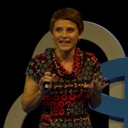 Acá está Lala en el evento de El Mundo de las Ideas 2014, hablando de su playa: