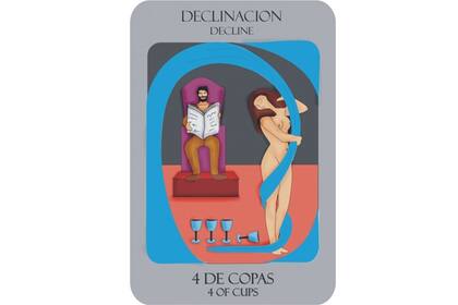 Cuatro de Copas: Advierte sobre la rutina que se ha instalado dando seguridad pero también sensación de freno y restricción. El orden y la estabilidad amorosa no presentan desafíos pero puede dar sensación de estancamiento. El vínculo es tan seguro y previsible que baja la creatividad. El exceso de seguridad no presenta desafíos o búsqueda de nuevos estímulos sensuales o de conquista, apatía afectiva, monotonía y aburrimiento. La calma y la seguridad logradas dificultan la decisión para actuar y modificar y ponerle chispa a la realidad que se está viviendo.