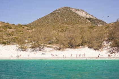 Por la mañana, recién llegados a Arraial do Cabo, a unos 20 kilómetros de Buzios, la leve brisa le da mayor movimiento al bote que nos traslada hacia Ilha do Farol y Praia do Forno. El bote tiene capacidad para unas 140 personas. Prácticamente el 80% de los pasajeros son argentinos.