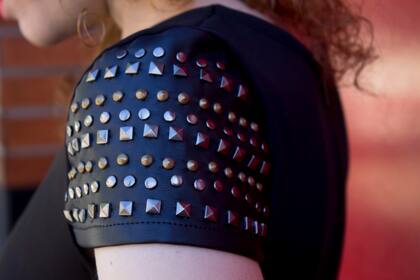 El vestido tiene línea "A", el cual se caracteriza por el entalle en la parte superior y la falda más acampanada. Este vestido es creado por Christian Dior triunfando en las pasarelas en el año 1950. Se caracteriza por sentarle bien a muchos tipos de cuerpos. El cinturón termina de marcar la cintura. Por otra parte las mangas tienen un detalle con tachas y ecocuero, lo que hace que se mezclen texturas y le den detalles únicos a esta prenda.