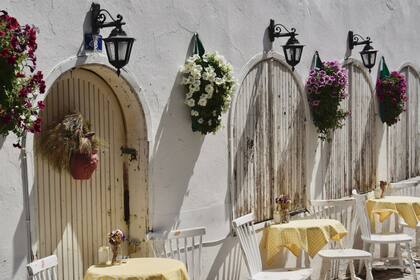 El centro del pueblo es un laberinto de calles angostas y empedradas, donde los autos tienen poca o nula circulación y el peatón es rey. La arquitectura es muy similar a la griega, producto de su ocupación en el siglo XIX: las fachadas color pastel, las puertas y ventanas azules, y las paredes adornadas de flores de jazmín y de Santa Rita componen una visual romántica especialmente atractiva cuando se pone el sol y se comienzan a prender las primeras luces.