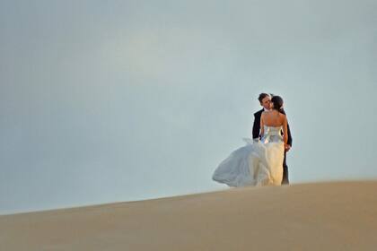 Lo extraño y divertido fue que, después de tener esta charla el sábado, inmediatamente fuimos a una playa que se llama Sardinia Bay y justo nos encontramos con una pareja de novios, ¡a punto de casarse! Fueron a esta playa de médanos imponentes a sacarse las fotos previas a la ceremonia. Después de una mañana gris, el cielo se abrió y les regaló unos cuantos rayos de luz. Lo que no se esperaban era un viento huracanado!! A pesar de la arena y la sal en la cara y el maquillaje, el peinado previamente impecable, deshecho, y el ensordecedor viento, los novios no podrían haber estado más felices! Seguro todo quedará para la anécdota!