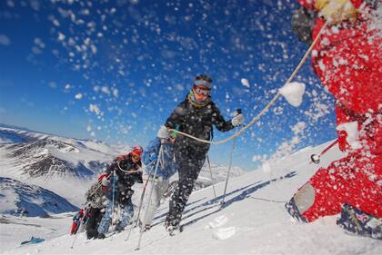 Nicolás Sieburger, de Caviahue Adventure, está a cargo de esas excursiones. Es una de esas personas a las que les toca vender algo que ellas mismas no dudarían en comprar. Ante la posibilidad de subir una vez más al Copahue, se entusiasma proporcionalmente a la aceleración de la moto de nieve Arctic Cat en cada ascenso. "Este es un lugar increíble, no me canso de venir", dice al borde mismo del cráter, desde donde se aprecia, en el fondo, una laguna, el vapor que asciende, las paredes interiores del volcán y un glaciar en el lado opuesto de la gigantesca boca. Es un momento único, pero el intenso olor a azufre le pone límite a la contemplación y hay que regresar a la base; lo que muchos esquiadores avanzados, como Jaume Ros, hacen sobre tablas, en una sesión fuera de pista verdaderamente única, de esas que los protagonistas contarán mil veces en mil sobremesas, con cierto derecho al orgullo.