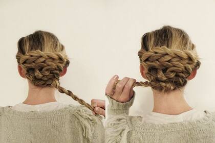 3- Con la yema de tus dedos despeiná la torzadita que quedó armada. La idea es que no quede un peinado super estructurado.