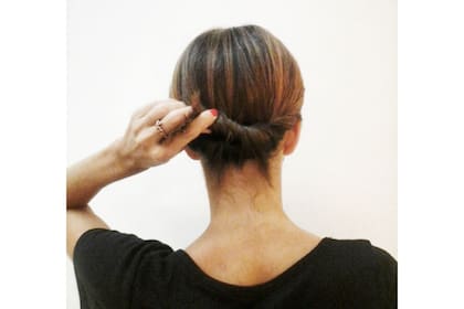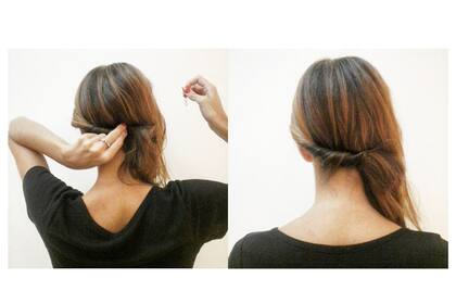 2- Hacé una torzada para adentro bien pegada al cuero cabelludo agarrando todo el pelo de ese costado y en dirección a la otra mitad de la cabeza. Arrancá a hacerla a la altura de la oreja.