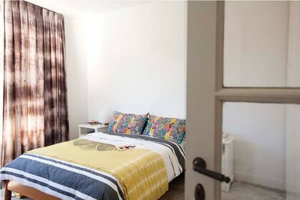 Como en el resto de la casa, tiene un ventanal desde donde puede admirar sus plantas y dejar entrar la luz natural. La onda se la ponen las cortinas, larguísimas, de una tela batik que compró en la calle Alsina. Cuesta alrededor de $50 el metro.