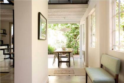 Tanto lo deseaba que quizá por eso lo presintió. Hace tres años, un día, Lucía de la Fuente (32, abogada) dijo en voz alta: "Mañana encuentro mi casa". Hacía tiempo que estaba buscando un lugar para mudarse y, al día siguiente de aquella certeza infundada, la casa, efectivamente, apareció. Un frente poco alentador en Núñez le deparó la sorpresa. Escondido al fondo y pegado a las vías del tren, la esperaba un PH antiguo con un patio, dos parras añejas y mucho por hacer. El estado de la casa la hizo dudar, pero confió. Tras once meses de obra, mucha ansiedad por verla terminada y unas ganas enormes de mudarse, por fin se instaló. A los pocos meses, conoció a Juan Cruz y lo que empezó sola siguió de a dos. La planta baja es un gran ambiente en el que todo se comunica y donde la escalera que avanza sobre los muebles de cocina y sube hacia el segundo piso es la gran protagonista. En el living instaló un megasillón de 2,40 metros, un juego de sofás individuales, dos cubos de acrílico y una alfombra de cruces pampas. "Acá estamos todo el tiempo. Leemos, comemos y miramos series y películas", dice Lucía.