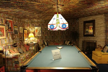 De vuelta a la planta baja hay un segundo living mucho más excéntrico que el principal. El espacio semeja a una jungla. Hay dos enormes sillones de madera cuyos brazos tienen la forma de cocodrilos, un leopardo en miniatura, un sillón rodeado de trofeos (el Rey era aficionado a las artes marciales) y ocupado por una guitarra y un muñeco de oso panda. Aquí Elvis se sentaba a fumar y a componer, y es sin duda el salón más camp de Graceland.