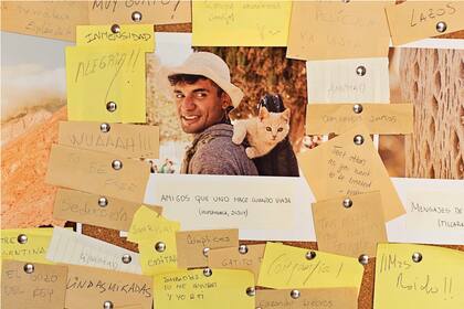 Ceci se sorprendió con las respuestas de la gente. Entre tantas notitas y mensajes, encontró uno en portugués. Y entonces empezó a preguntarse qué pasaría si llevara su muestra afuera de la Argentina. Sin pensarlo demasiado, compró varios corchos tamaño A4 y ganchitos de carpeta (con los que luego uniría los corchos) y guardó todo en su valija junto con las fotos de la muestra.