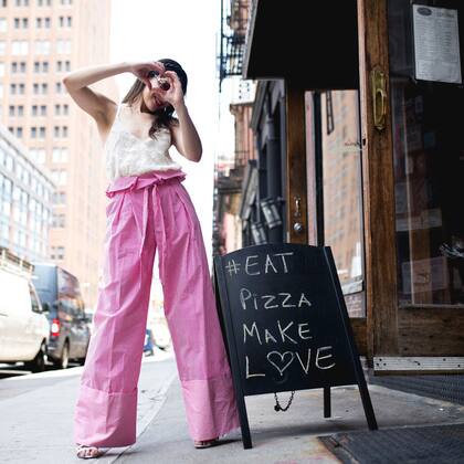 En la elección del look de hoy se llevó la cintura alta a su máxima expresión con un pantalón holgado y de genero súper liviano, ideal para afrontar las altas temperaturas de calor en la ciudad. Lo acompañé con una blusa que, si bien también es holgada, se adapta perfecto a este tipo de silueta.