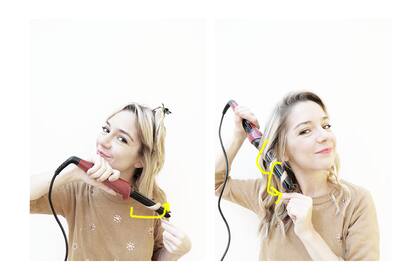 2. Hacete ondas con la buclera. Primero arrancá con el pelo de abajo y después con la otra capa. Acordate de hacer las ondas que están más cerca de la cara, para afuera. Así no se te vienen para adelante como a Nelly Olson. Y después una para adentro y otra para afuera. Como siempre.