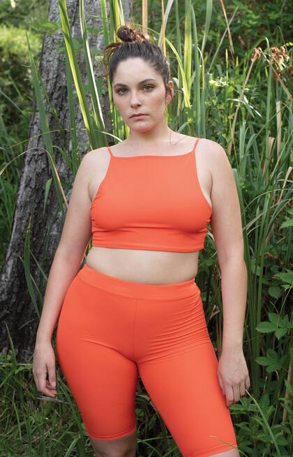 Entero, Caro Cuore, $3990. Top, Plus Indumentaria, $1050. Biker, Plus Indumentaria, $1150. Corpiño, Caro Cuore, $1793. Bombacha, Caro Cuore, $1590. Entero, Suit, $2190.