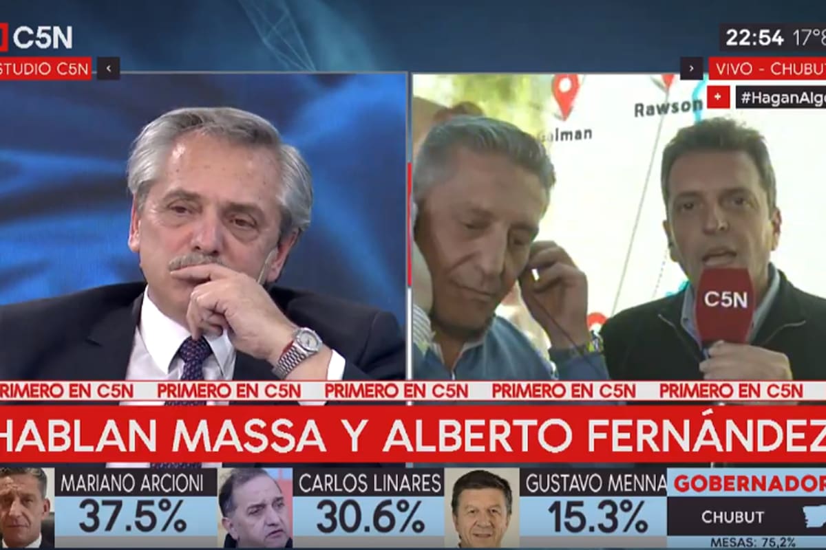 No fue un diálogo secreto, pronunciado a puertas cerradas, sino el intercambio que Alberto Fernández y Sergio Massa mantuvieron esta noche a través de la pantalla de C5N. El primero, en los estudios porteños del canal. El segundo, en Comodoro Rivadavia, donde había viajado para acompañar los festejos de la reelección del gobernador Mariano Arcioni.