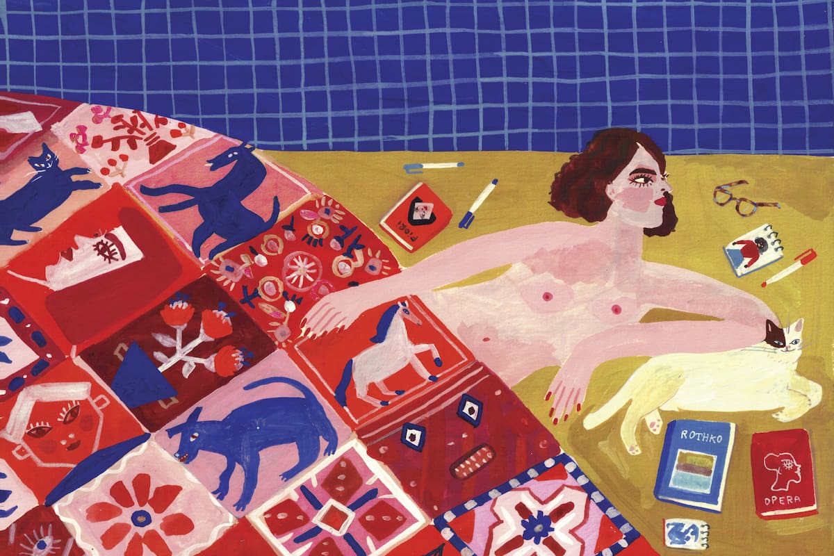 Con cálido humor, esta artista rosarina, ilustradora editorial y autora de libros como Casa transparente y Noticias de pintores, construye refugios, composiciones que invitan a acariciar un gato, hojear un libro, tumbarse a descansar o disfrutar de una copa de vino.
