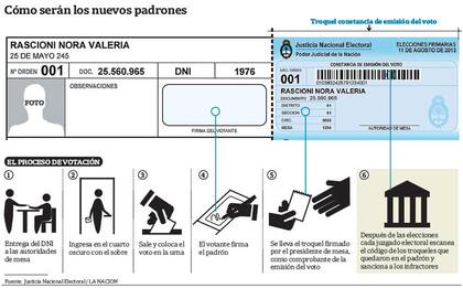 Los cambios –a los que tuvo acceso LA NACION– fueron necesarios por la reforma de la ley electoral y el cambio del formato de los DNI. Ahora los nuevos documentos, emitidos por el Registro Nacional de las Personas, que depende del Ministerio del Interior y Transporte, dejaron de ser libretas con páginas reservadas para que el presidente de mesa las selle con la fecha de la elección.