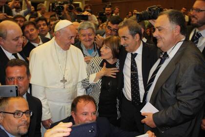 Guillermo Moreno, agregado comercial en Italia, encabezó una numerosa tropa que visitó al Papa. Estuvieron Eduardo Valdés, que luego fue nombrado embajador; el empresario Ider Peretti, el sindicalista Omar Suárez y hasta Diego Maradona