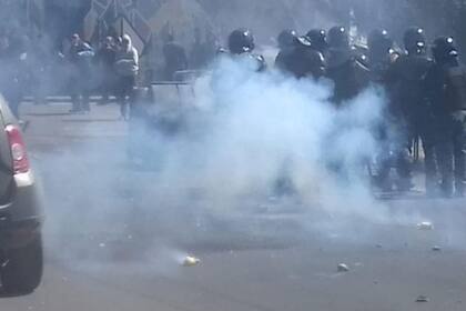 La Policía sostiene que los manifestantes intentaron ingresar a la zona de la marcha una camioneta Ford F100 color gris dominio SPO 368 "cargada con cubiertas, piedras y pirotecnia, y al no poder pasar el vallado arrojaron piedras contra personal policial y realizaron quema de cubiertas en el lugar, con corte total de calzada".