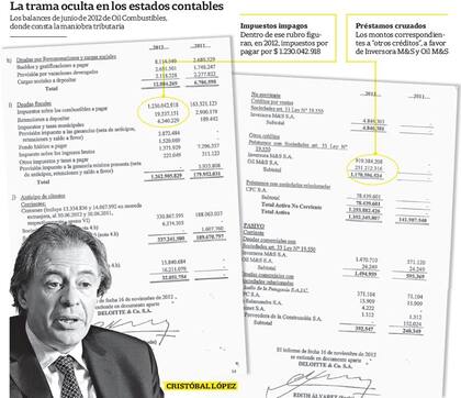 Al mismo tiempo que acumuló esa deuda gigantesca con la AFIP, Oil Combustibles comenzó a girar dinero a otras empresas del grupo. Lo registró como "créditos no corrientes", es decir que no cobraría durante los 12 meses posteriores. Es decir, un multimillonario descalce de liquidez que la firma auditora de sus cuentas, Deloitte, no señaló en sus notas el balance.