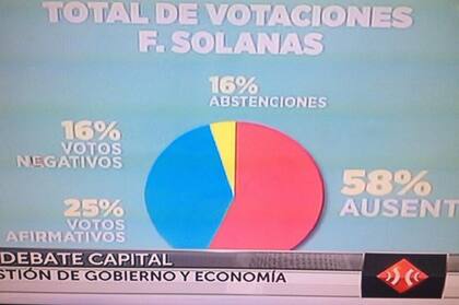 Filmus mostró un cartel sobre la participación de Pino Solanas en el Congreso, con una particularidad: el porcentaje total dio 115%.