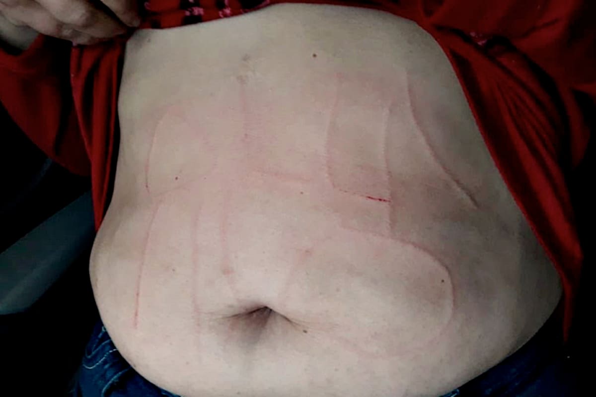 Al hacer público el hecho a través de su perfil de la red social Facebook, la docente mostró la foto de su vientre con heridas atribuidas a presuntos sospechosos que la habrían secuestrado y, según su denuncia, la habían lastimado con un elemento cortante hasta dejarle inscripta en la piel la leyenda "Ollas, no".