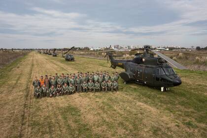 Si bien el recorrido por los mil metros de trayectoria del desfile le demandó a los helicópteros unos pocos minutos, la jornada para los integrantes del equipo de combate comenzó a las 8.30 en Campo de Mayo, donde tiene asentamiento la fuerza.