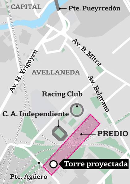 Se trata de la construcción de la torre única de telecomunicaciones del área metropolitana, situada en el conjunto de playas ferroviarias linderas a los estadios de los clubes Independiente y Racing, en Avellaneda, de 368 metros, con 44 pisos circulares de 1500 m2. Allí funcionaría una antena de la TV Digital Terrestre y un centro de transmisiones de FM, UHF, VHF. La torre que se aprobó en el proyecto tendría una altura de 266 metros, a la que se sumaría una antena de 102 metros.