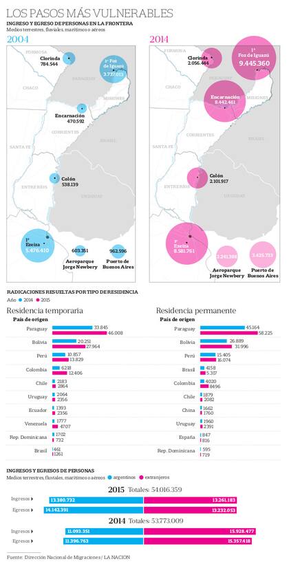 "Buscamos que haya una visión global del delito para avanzar en la lucha contra la trata de personas, el narcotráfico y el terrorismo", explicó a LA NACION el director de Migraciones, Horacio García, que desde el Ministerio del Interior coordina con el Ministerio de Seguridad el plan de "fronteras seguras".