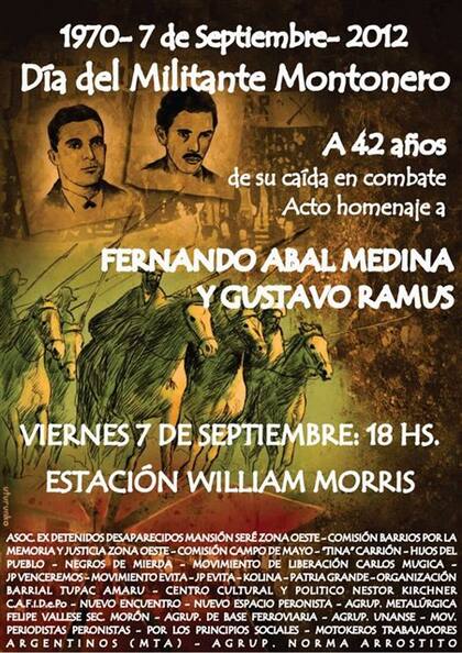 Las organizaciones kirchneristas y de izquierda que hoy celebrarán por separado el Día del Militante Montonero reivindicarán a Fernando Abal Medina y a Gustavo Ramus, muertos en 1970.