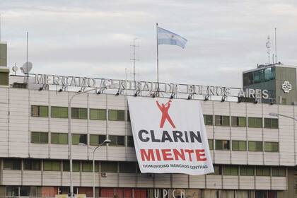 Asimismo, en las cabinas de ingreso del Mercado Central fue colgado un pasacalle con la leyenda "Clarín miente" y en la zona fueron pegados afiches con ese mismo texto.