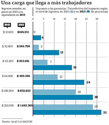 El Gobierno decretó en los últimos años la suba del mínimo no imponible de Ganancias por debajo de la inflación. Las alícuotas no se actualizan desde 2000, antes del estallido de la convertibilidad.