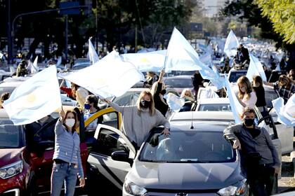 Con 150 días de aislamiento y tal vez en el momento de más contagios, la protesta contra el Gobierno en el Obelisco se hizo notar. Entre bocinazos y banderas argentinas, las consignas que primaron, salvo algunas pocas del orden terraplanista y antivacuna, fueron las relacionadas con la Justicia. Los carteles reclamaban lo que las bocas cubiertas con los barbijos no podían expresar: "no a la reforma judicial', "basta de corrupción", "justicia si, reforma no".