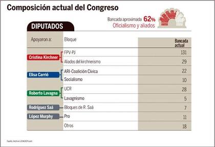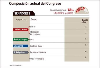 Tras las elecciones de octubre de 2007, en diputados, de los 257 legisladores que conforman la Cámara, el Frente para la Victoria tiene 131. En tanto, en la Cámara alta son 41 los oficialistas sobre un total de 72.