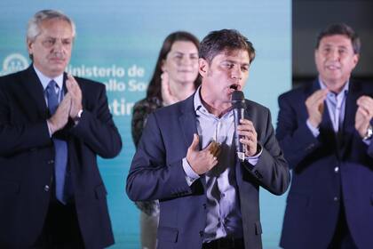 El presidente Alberto Fernández y el gobernador Axel Kicillof compartieron ayer un acto en Moreno, con motivo del lanzamiento de un programa para reparar escuelas. El encuentro se realizó en el Club Los Indios, con funcionarios y dirigentes de organizaciones sociales que acompañaron la presentación del plan, que involucrará a 12.000 cooperativistas de la provincia y 30.000 del país en la reparación de escuelas. "Este es un enorme plan de integración", destacó el Presidente. En el escenario estuvieron también los ministros de Educación, Nicolás Trotta; Interior, Eduardo "Wado" de Pedro, y Desarrollo Social, Daniel Arroyo, y el jefe del bloque de diputados nacionales del Frente de Todos, Máximo Kirchner, entre otros.