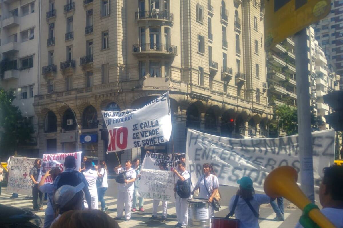A partir de las 10 de la mañana, los profesionales de la salud se movilizaron hacia el Congreso a raíz de la modificación de la ordenanza N° 41.455, motivo por el cual perdieron la categoría de "profesionales" y son considerados únicamente "personal técnico-administrativo".