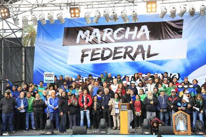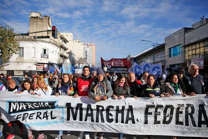 Esta tarde se realizó en Plaza de Mayo el acto central de la Marcha Federal. Columnas de distintas organizaciones habían empezado a llegar a la plaza después del mediodía. La movilización había comenzado el lunes con marchas desde distintos puntos del país que convergen hoy frente a la Casa Rosada.