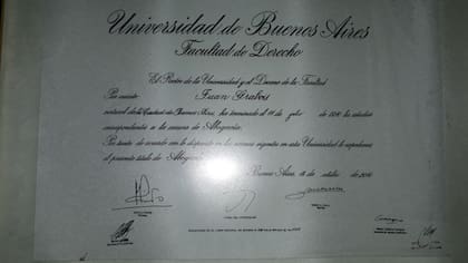 Título de Juan Grabois de la Facultad de Derecho en la Universidad de Buenos Aires.