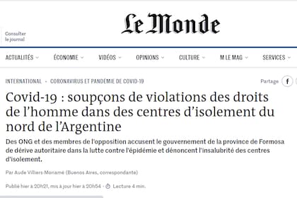 El diario francés visibilizó los acontecimientos en los centros de aislamientos y las diversas denuncias de ONG y miembros de la oposición, quienes acusan al gobierno de Formosa de "deriva autoritaria en la lucha contra la epidemia y que denuncian las insalubres condiciones de los centros de aislamiento".