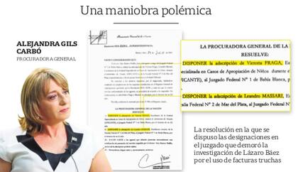 La procuradora general de la Nación, Alejandra Gils Carbó, designó dos empleados en el Juzgado Federal de Bahía Blanca, donde se demoró la investigación sobre el uso intensivo de facturas truchas por Lázaro Báez. Lo hizo sin consultar con la Cámara Federal de Bahía Blanca, pasando por encima de la frontera entre Poder Judicial y Ministerio Público, lo que podría configurar el delito de abuso de autoridad, además de generar un potencial conflicto de intereses, según surge de documentos oficiales que recopiló y analizó LA NACION.