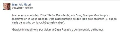 GRACIAS DOUGGRACIAS DOUGMe dejaron este video. Dice: "Señor Presidente, soy Doug Stamper. Gracias por recibirme en la Casa Rosada. Vine a asegurarme de que todo esté en orden. Si puedo serle de ayuda, por favor, hágamelo saber".Gracias Michael Kelly por visitar la Casa Rosada y por tu sentido del humor.