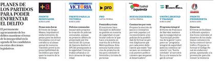Ayer, y acompañado por familiares de víctimas de hechos violentos, el candidato del Frente Renovador, Sergio Massa, presentó en un hotel porteño una batería de medidas que incluye el endurecimiento de penas contra el narcotráfico, delitos aberrantes como el abuso sexual y la trata de personas. Pero también Francisco de Narváez (Frente Unión Libertad y Trabajo), Margarita Stolbizer (Frente Progresista) y hasta el candidato del kirchnerismo Martín Insaurralde tienen entre sus prioridades la batalla contra la inseguridad ciudadana, un tema que el gobierno de Cristina Kirchner siempre intentó evitar en los debates públicos.