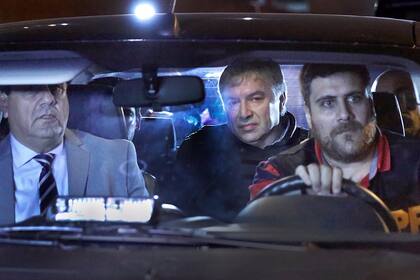 Quizá fue la posición en la que tomó la imagen, tal vez sea esa luz que se ve en el fondo, que no se sabe bien qué es pero que le da el clima que se ajusta a la situación, seguro son sus más de 25 años de experiencia los que sacaron la foto perfecta: Lázaro Báez , con chaleco antibalas, esposado, con una suave mueca de incomodidad en la boca y una ráfaga blanca que ilumina el costado izquierdo de su cara de ojos negros y pelo canoso y labios gruesos. Así es trasladado el empresario kirchnerista por la Policía Federal a una comisaría de Palermo luego de bajar de su jet privado en el aeropuerto de San Fernando.